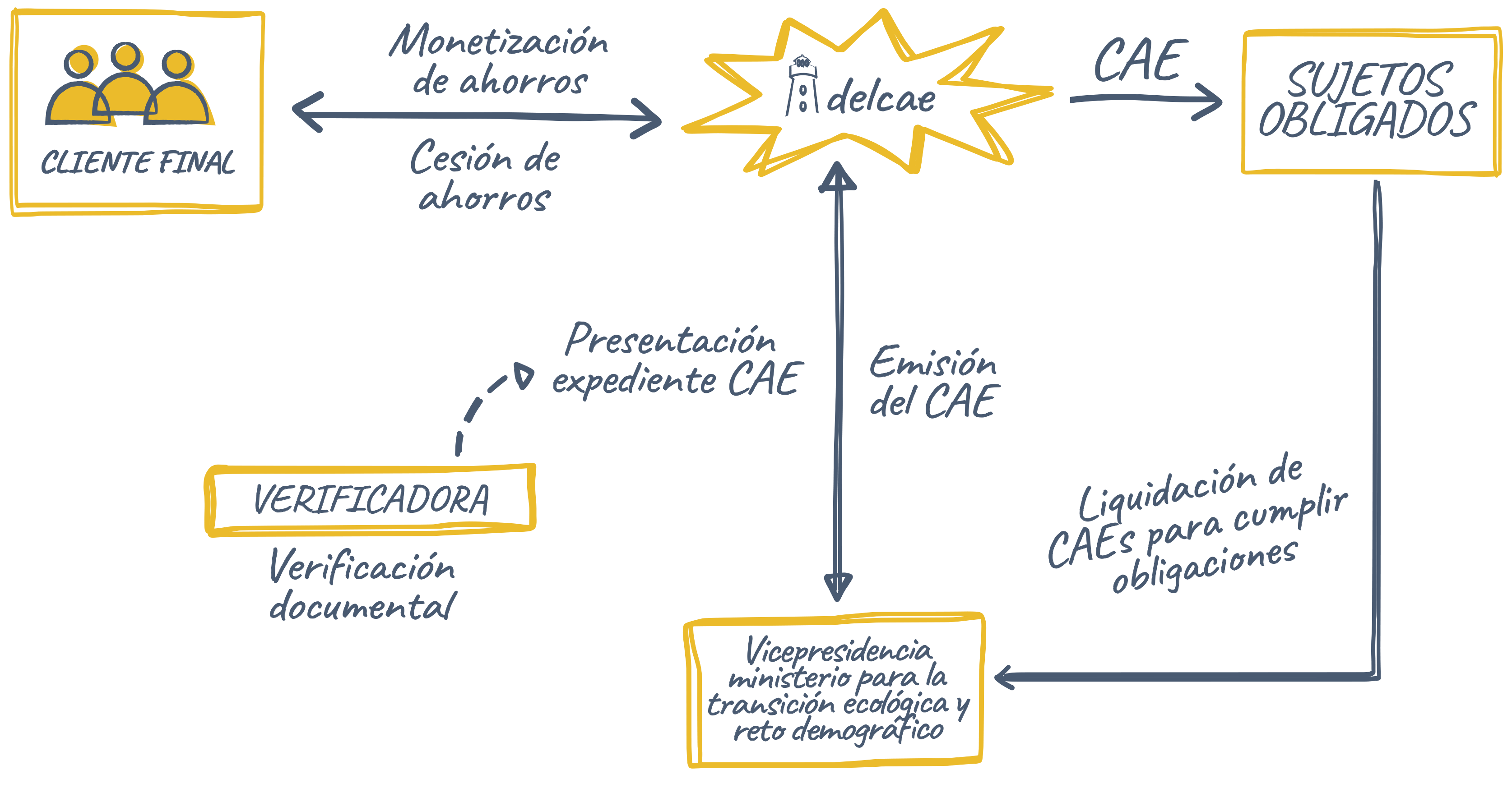 El Mercado de los Certificados de Ahorros (CAE) surge en España con la publicación del RD 36/2023 siguiendo los modelos del resto de los países de la UE para dinamizar la Eficiencia Energética en todos sus niveles y tamaños. Se trata de una actividad regulada donde empresas como delcae actúan como Sujetos Delegados con la misión de impulsar y ayudar a desarrollar proyectos de ahorro energéticos, pagando por dicho ahorros a los clientes finales.